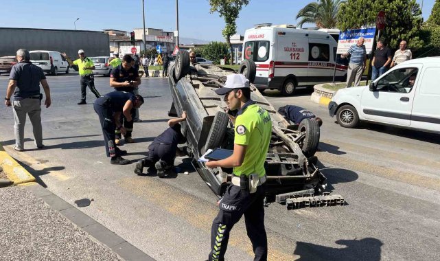 Aydın'ın Efeler ilçesinde ani fren yapan araca çarpmamak için manevra yapan otomobil refüje çıkarak takla attı. Kazada 2 kişi yaralandı.
