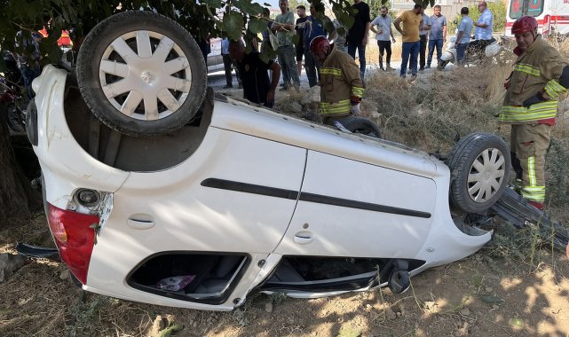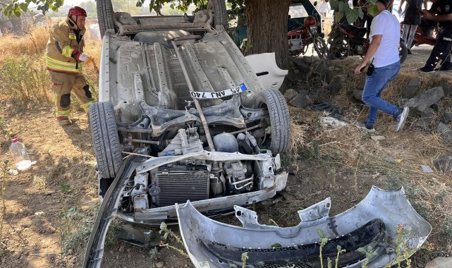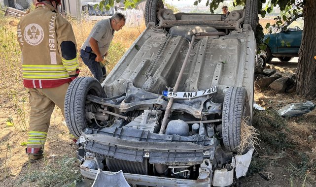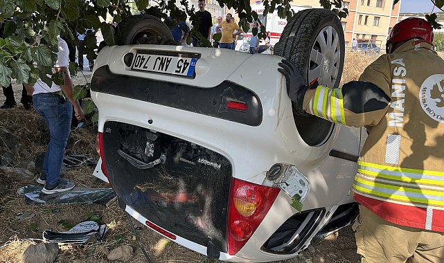 Manisa'nın Kula ilçesinde seyir halindeki otomobil sürücüsünün direksiyon hakimiyetini kaybetmesi sonucu tarlaya uçtu. Ters dönen araçtan sürücü ve torunu hafif yaralı olarak kurtuldu.
