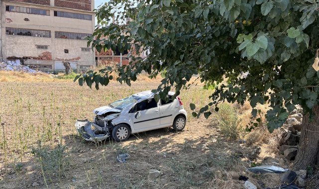 Otomobil tarlaya uçtu, sürücü ve torunu hafif yaralandı