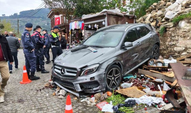 Otomobil tezgahın üzerine uçtu: 1 yaralı