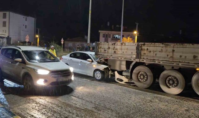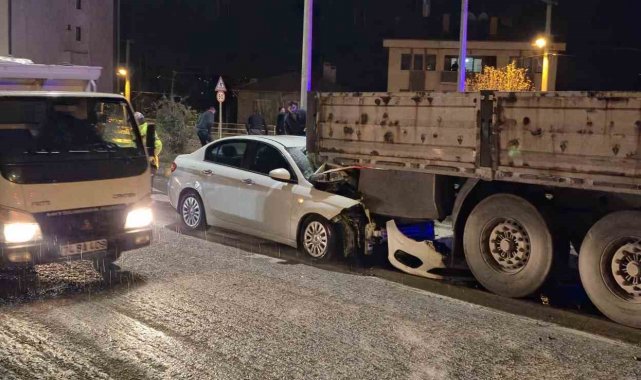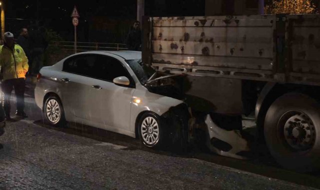 Otomobil tırın dorsesine saplandı:1 yaralı