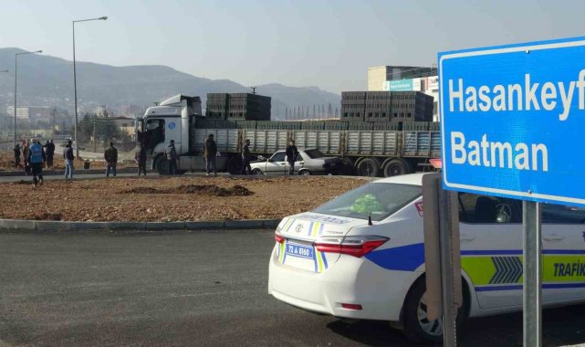Batman'ın Gercüş ilçesinde kavşakta dönüş yapan tır otomobile çarptı. Kaza maddi hasarla atlatıldı.