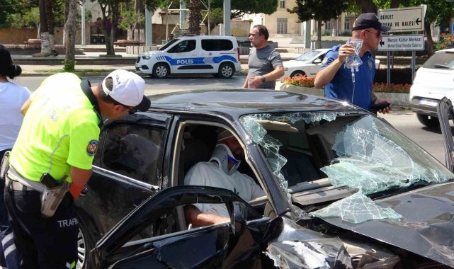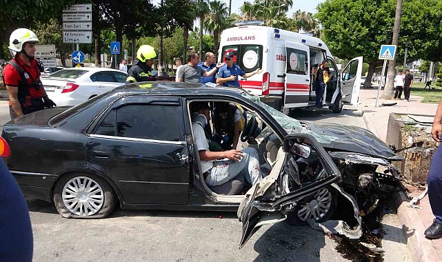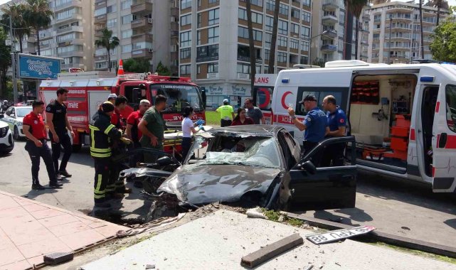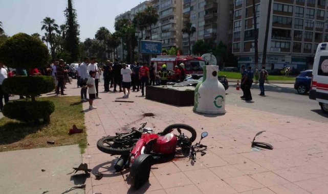 Mersin'de otomobilin kavşakta dönüş yapan motosikletle ve bir başka motosikletle daha çarpıştığı kazada 1'i ağır 3 kişi yaralandı. Motosiklet sürücüsünün kaskının araç içerisine fırlaması ise dikkat çekti.