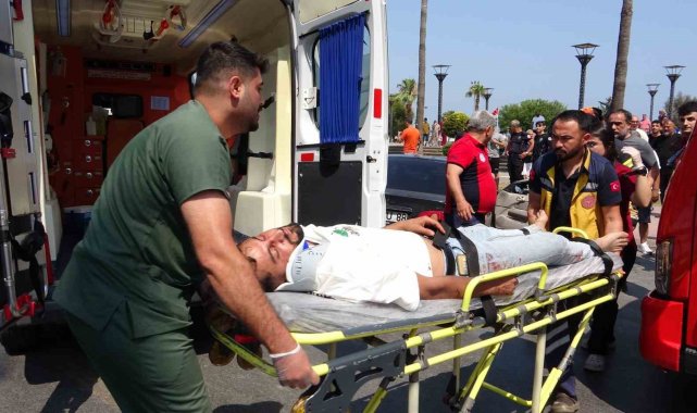 Kaza, merkez Akdeniz ilçesi Çankaya Mahallesi'nde meydana geldi. Alınan bilgiye göre, Oğuzhan I. idaresindeki 16 KPU 88 plakalı otomobil, kavşakta dönüş yapan 33 BRE 79 plakalı motosiklet ve bir başka motosikletle çarpıştı. İlk motosiklette bulunan 2 kişi savrulup hafif sıyrıklarla kazayı atlattı. Otomobil çarptıktan sonra duramayarak 33 BRE 79 plakalı motosikletin sürücüsü Bedir Bülent K.'yi önüne alıp metrelerce sürükledi. Araç, sürüklediği sürücü ile birlikte kaldırıma çarparak durabildi. O sırada bölgede bulunan polis ve çağrılan sağlık ekipleri yaralılara müdahale etti. Motosiklet ve araçtaki 3 yaralı ambulanslarla hastaneye kaldırılarak tedavi altına alındı.