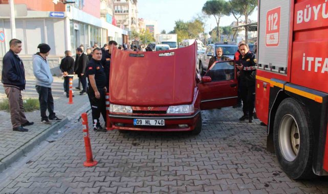 Aydın'ın Efeler ilçesinde bir otomobilin motor bölümünden yükselen dumanlar, itfaiye ekiplerini harekete geçirdi.