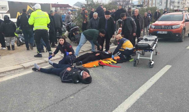 Otomobile çarpan motosiklet savruldu: 2 yaralı