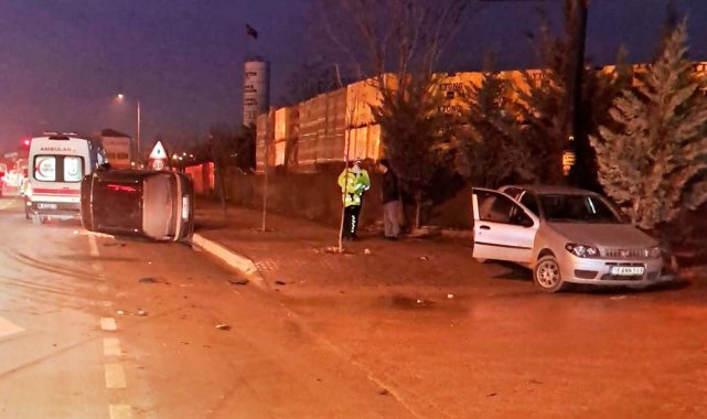 Otomobile çarpan ticari araç devrildi