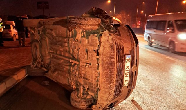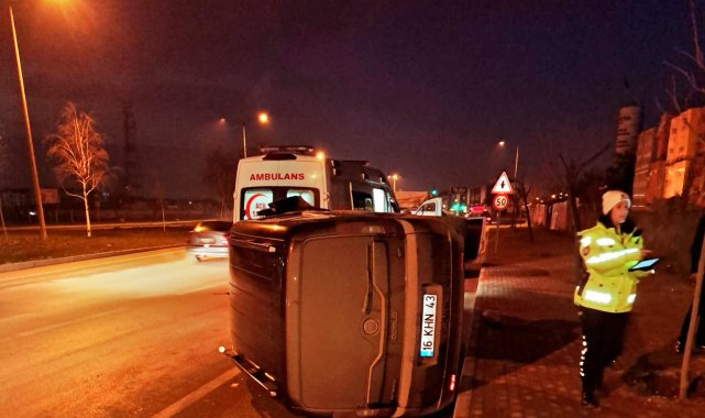 Edinilen bilgiye göre, kaza saat 07.30 sıralarında İnegöl-Alanyurt yolu üzerinde meydana geldi. Enes Y. (18) yönetimindeki 16 KHN 43 plakalı hafif ticari araç, önünde seyreden Cevdet A. idaresindeki 16 ANN 569 plakalı otomobile çarptı. Çarpmanın etkisiyle kontrolden çıkan hafif ticari araç devrildi. Kaza sonucu sürücü Enes Y. yaralandı. Yaralı kaza yerine sevk edilen ambulansla İnegöl Devlet Hastanesine kaldırıldı.