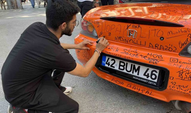 Konya'da yaşayan 25 yaşındaki esnaf Muhammet Çetin, otomobiline kendi çevresiyle birlikte imza atmaya başladı. Çetin'in iş yerinin karşısında duran turuncu renk kaplamalı Honda S2000 Cabrio otomobili ilgi odağı olurken, görenler araca imza atmadan geçmiyor. İmza atma olayı sosyal medyada büyüdü. Aracı kapladıklarını belirten Muhammet Çetin, "Arabanın kaplamasını sökecektik, sırf reklam olsun diye imza için toparladık. Bizim beklentimiz aslında bu kadar değildi, düşüktü ama bu kadar geleceğini bilseydik daha önce yapardık bu işi. Normalde sadece biz kaputta olur diye bekledik. Çok ilgi gördü. Bilmiyorum daha fazla kim imza atmaya gelir. Şu an şehir dışından farklı yerlere çağrılıyoruz. Gider miyiz, gitmez miyiz bakacağız. Vaktimiz olsa inşallah gideceğiz başka şehirlere" dedi.