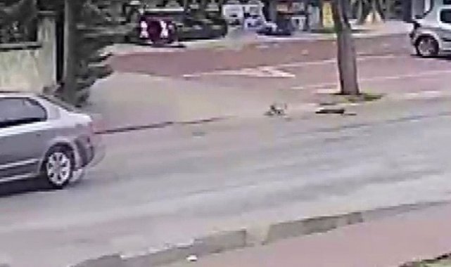 Öte yandan, olay anı saniye saniye güvenlik kamerasına yansıdı. Görüntülerde aracın kediye çarpması, kedinin bir süre koşup yere yığılması yer alıyor.