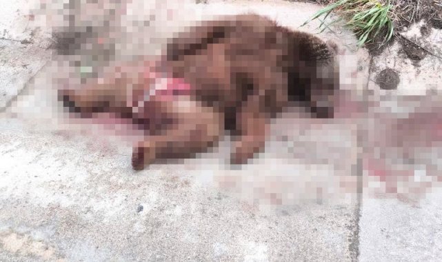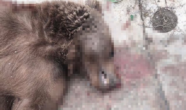 Bursa'da otomobilin önüne atlayan bozayı telef oldu.
