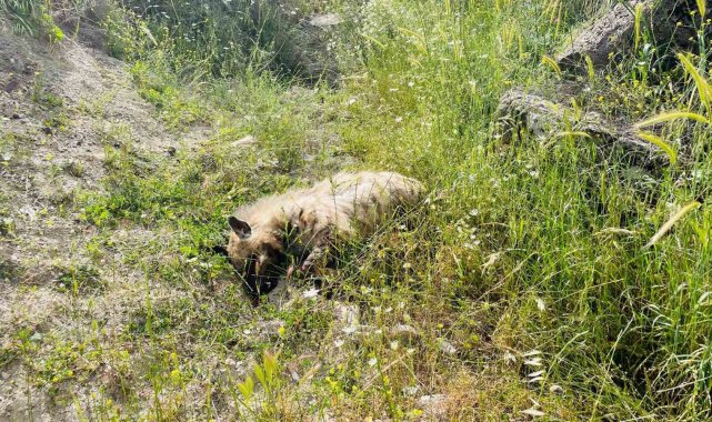 Adıyaman'da, otomobilin çarptığı çizgili sırtlan telef oldu.