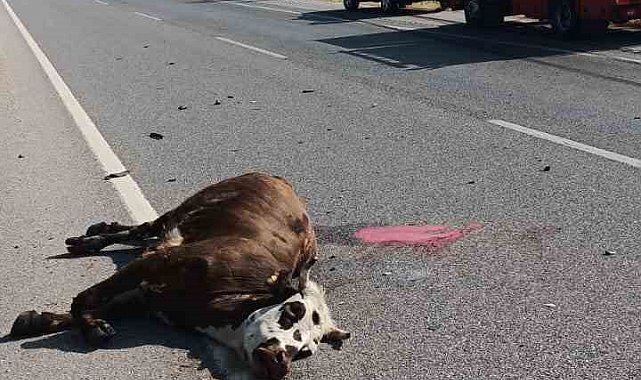 Amasya'nın Merzifon ilçesinde bir otomobilin çarptığı inek olay yerinde telef oldu.