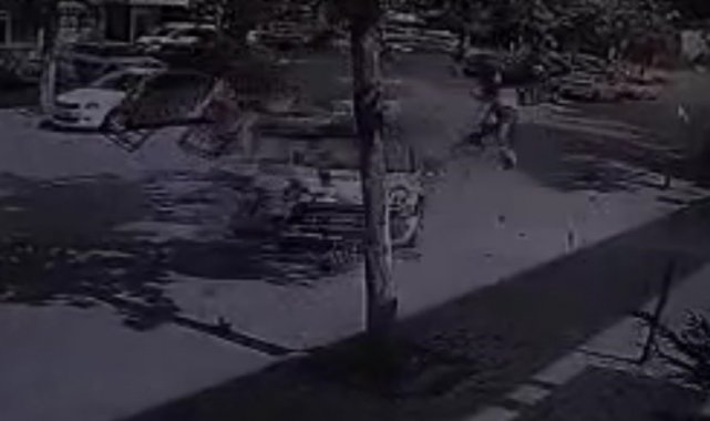 Kaza anı ise çevrede bulunan bir sitenin güvenlik kamerasına saniye saniye yansıdı. Görüntülülerde; otomobilin hızla kavşağa girişi, park halindeki otomobile çarpmasını ardından motosiklete çarpması ve motosiklet sürücüsünün metrelerce havaya uçup ağaca çarpması yer alıyor.