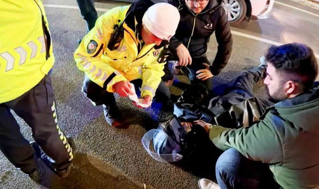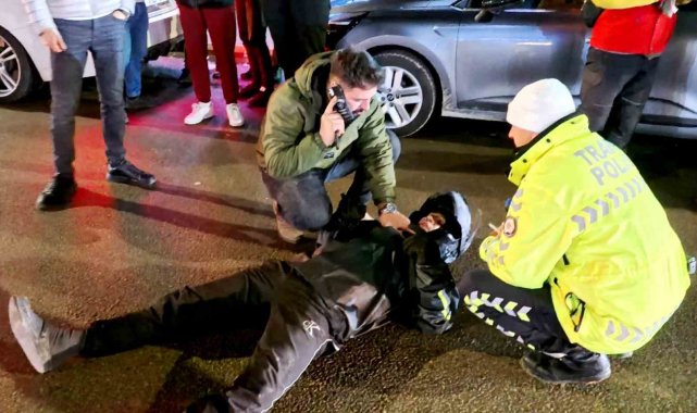 Otomobilin çarptığı motosiklet sürücüsü yaralandı