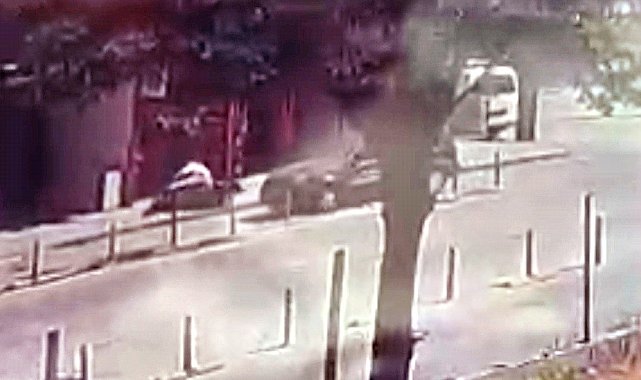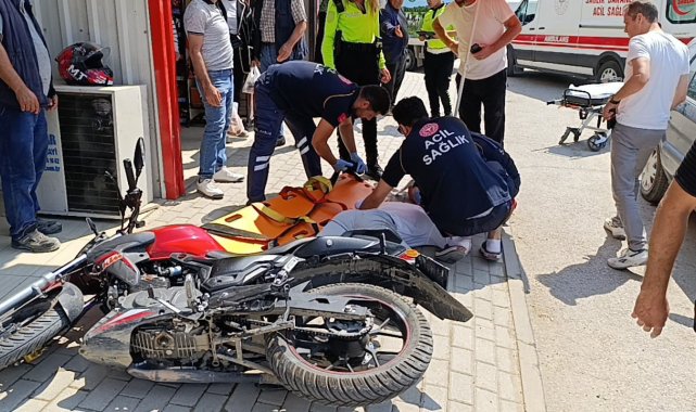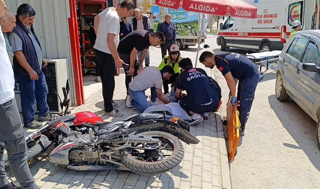 Bursa'nın İnegöl ilçesinde otomobil ile çarpışan motosiklet sürücüsü yaralandı. Kaza anı bir işyerinin güvenlik kamerasına saniye saniye yansıdı.