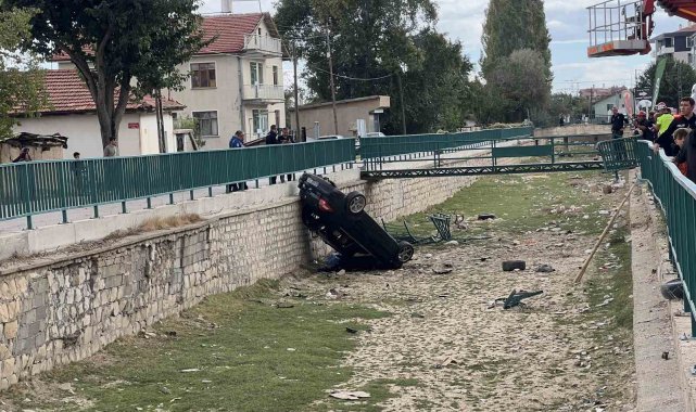 Konya'da sürücüsünün direksiyon hakimiyetini kaybettiği otomobil kanala uçtu. Saniye saniye güvenlik kamerasına yansıyan kazada, araçta bulunan genç kız hayatını kaybederken, sürücü yaralı olarak hastaneye kaldırıldı.