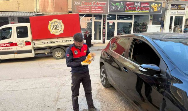 Çorum'un Sungurlu'da otomobiliyle seyir halindeyken motor kısmından gelen kedi seslerini fark eden sürücü, durarak durumu itfaiyeye bildirdi. İhbar üzerine olay yerine kısa sürede ulaşan Sungurlu Belediyesi itfaiye ekipleri motor kısmına sıkışan yavru kediyi kurtardı.