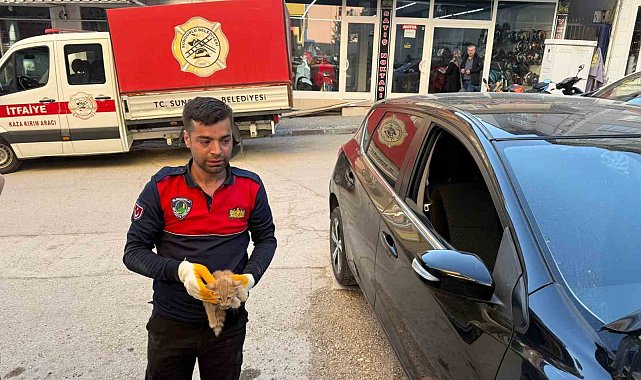 Çorum'un Sungurlu ilçesinde bir aracın motor kısmına giren yavru kedi, sürücünün fark etmesinin ardından itfaiye ekipleri tarafından kurtarıldı.