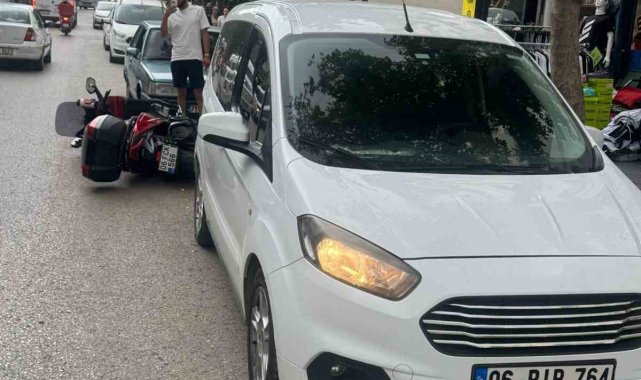 Otomobilin park halindeki motosiklete çarptığı kaza kamerada