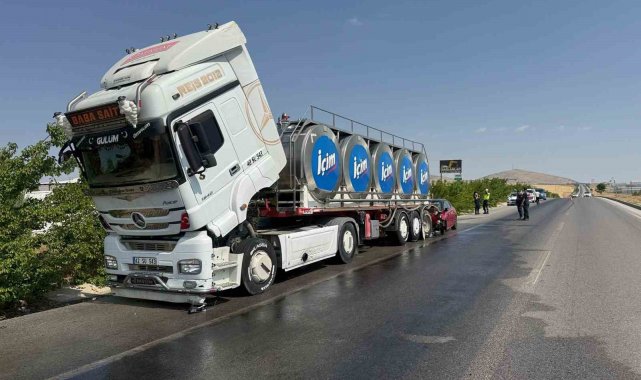 Otomobilin süt tankerine çarptığı kaza güvenlik kamerasında