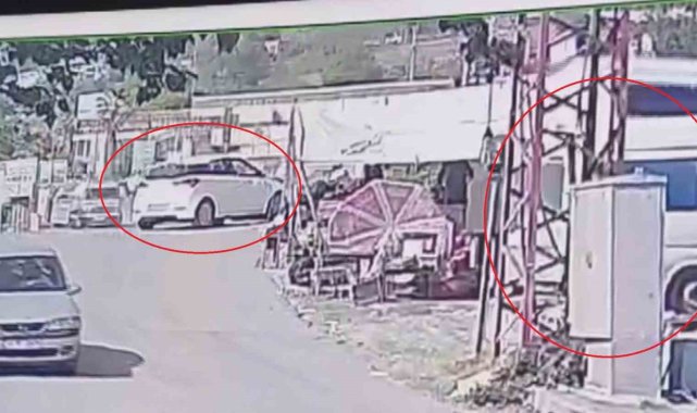 Hatay'ın Dörtyol ilçesinde otomobille çarpışan minibüsün dereye uçma anı kameraya yansıdı. Çarpışma sonrası dereye uçan minibüsteki 4 kişi yaralandı.