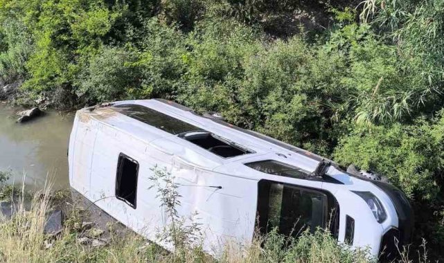 Otomobille çarpışan minibüs dereye uçtu, o anlar kamerada