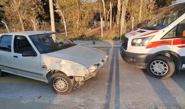 Otomobille çarpışan motosiklet durağa daldı: 2 yaralı