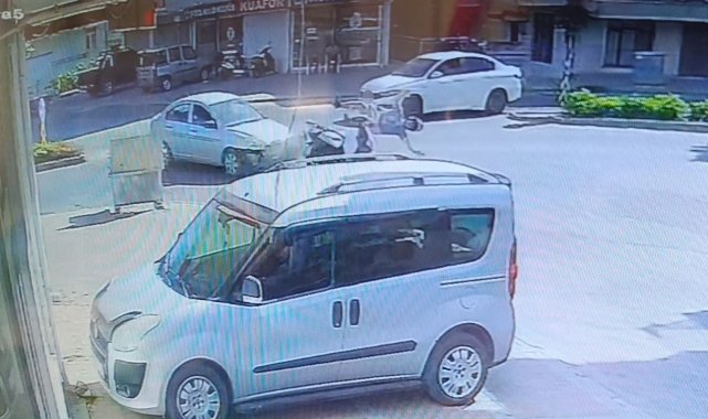 Güvenlik kamerasına anbean yansıyan kaza görüntülerinde, sürücünün çarpışma sonrası motosikletiyle birlikte yola savrulması yer aldı.