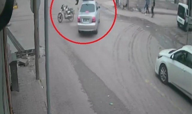 Kaza, Reyhanlı ilçesi Cumhuriyet Mahallesi'nde yaşandı. Trafikte seyreden 60 BM 717 plakalı Mercedes Benz marka otomobil ile 31 AKF 676 plakalı Kuba marka motosiklet çarpıştı. Çarpışmanın etkisiyle metrelerce havaya uçan motosiklet sürücüsü Halit C. ile yanındaki İsmail C. ağır yaralandı. Çevredekilerin ihbarı üzerine olay yerine polis ile ambulans ekipleri sevk edildi. Yaralılar, kısa sürede bölgeye gelen sağlık ekiplerince ilk müdahalenin ardından hastaneye kaldırıldı. Kameraya yansıyan kazayla ilgili inceleme başlatıldı.