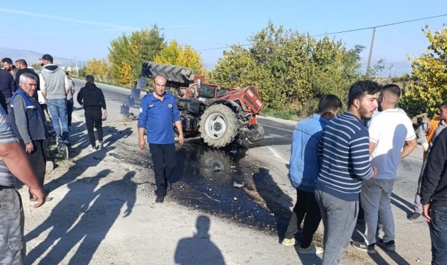 Denizli'de seyir halindeki otomobil ile traktörün çarpışması sonucunda traktör ikiye bölünürken otomobil ise kullanılamaz hale geldi. Kaza sonucunda 2 sürücü de yaralandı.
