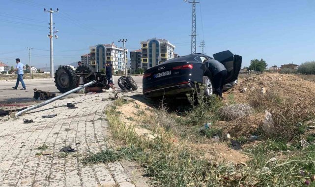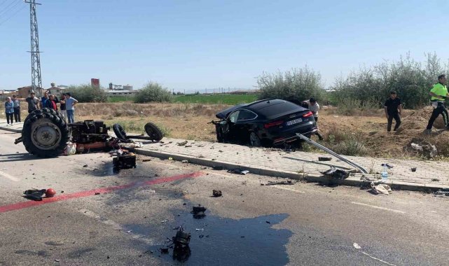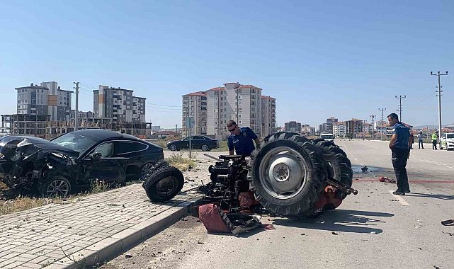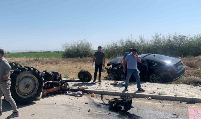 Otomobille çarpışan traktör parçalandı: 1 ölü
