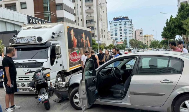 Antalya'da 'U' dönüşü yapan otomobile çarpan motosikletin sürücüsü kazayı hafif yaralı olarak atlattı. Kaza anı güvenlik kamerasına yansıdı.