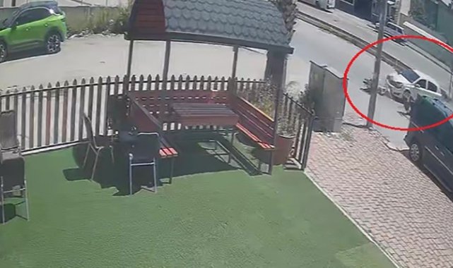 Antalya'nın Kepez ilçesinde motosiklet ile otomobil çarpıştı. Kaza anı bir işyerinin güvenlik kamerasın saniye saniye yansıdı