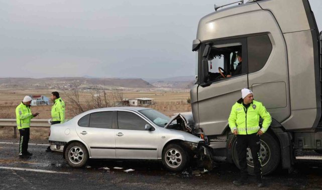 Nevşehir'de karşı şeride geçen otomobille tırın kafa kafaya çarpışması sonucu 1 kişi hayatını kaybederken 1'i ağır 3 kişi yaralandı.