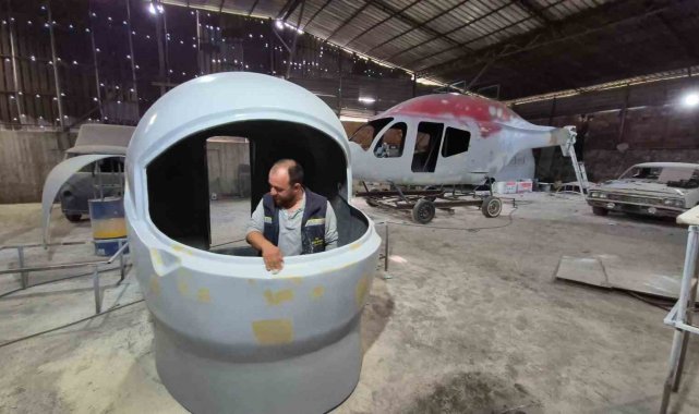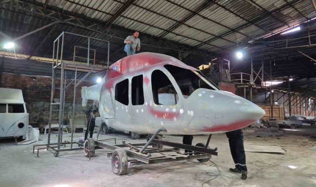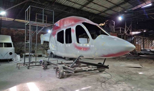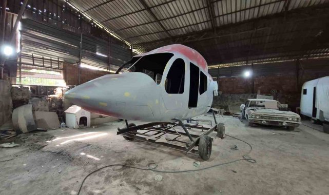 Marangoz, üretimini sürdürdüğü helikopterin farklı amaçlarla değerlendirilebileceğini ifade ederek, "Helikopteri antikacı bir ağabeyimizden aldık. Hurdaya verilmişti, görseli fiber bir üründü. Şimdi bu üründen komple restorasyon yapacağız. Boyayacağız, kapılarını aktif hale getireceğiz. Daha sonra kalıp alıp üretime geçeceğiz. Bu ürün bungalov yapılabilir, kafe yapılabilir, simülatör olabilir. Havuz kenarında bir görsel olarak da kullanılabilir. Yani tamamen müşterinin isteğine göre sistemi kuruyoruz" dedi.
