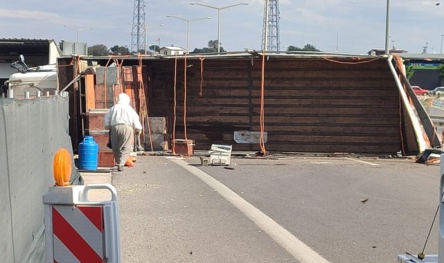 Otoyol çıkışında kamyon kaza yaptı, binlerce arı çevreye yayıldı: 3 yaralı
