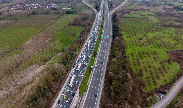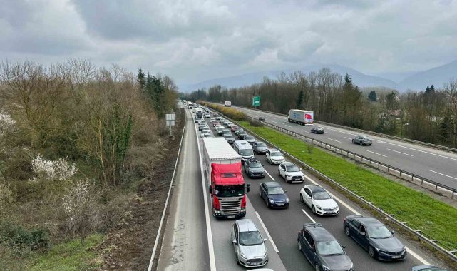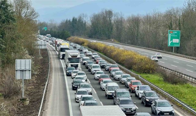 Anadolu Otoyolu'nun Düzce geçişinde, meydana gelen maddi hasarlı ve yaralamalı trafik kazaları nedeniyle dönüş yolunda yoğunluk artarak devam ediyor.