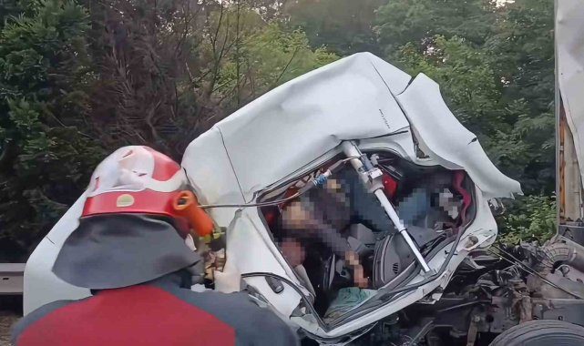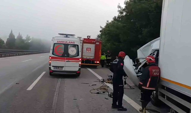 Anadolu Otoyolu Kocaeli geçişinde tıra arkadan çarpan kamyonun kağıt gibi ezilen kupa kısmında sıkışan sürücü olay yerinde hayatını kaybetti.