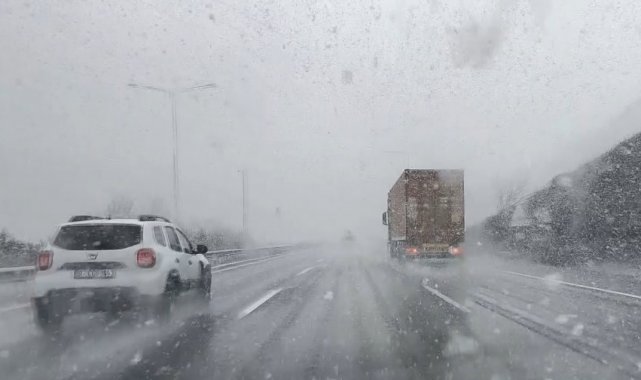 Otoyolda kar, görüş mesafesini 10 metreye kadar düşürdü