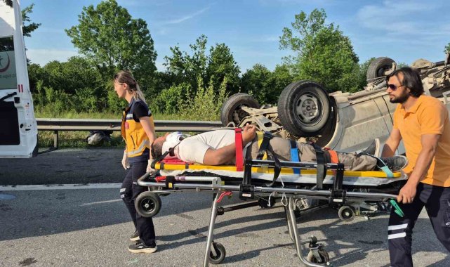 Düzce(İHA) – Anadolu Otoyolu Düzce kesiminde inşaat işçilerini taşıyan aracın lastiğinin patlaması sonucu takla attığı kazada 3 kişi yaralandı.