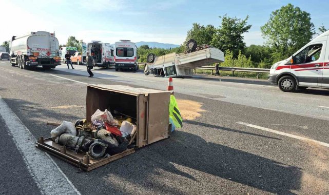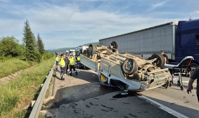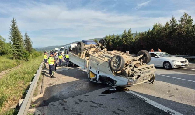 Otoyolda lastiği patlayan pikap takla attı: 3 yaralı