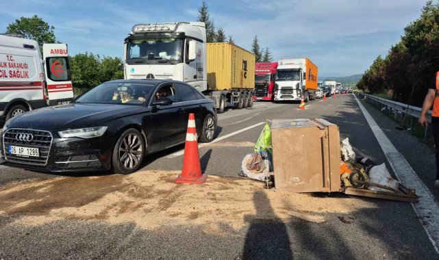 Kaza nedeniyle uzun araç kuyrukları oluştu. Araç ve yola savrulan inşaat malzemelerinin kaldırılmasının ardından trafik normal seyrine döndü.