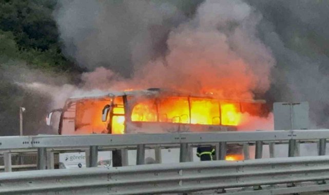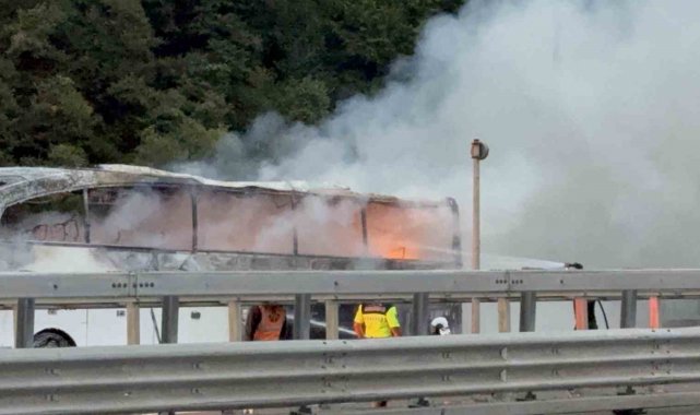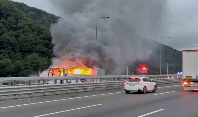Anadolu Otoyolu Düzce mevkinde şehirlerarası yolcu otobüsü alev alev yandı, İstanbul istikameti trafiğe kapandı.