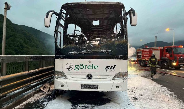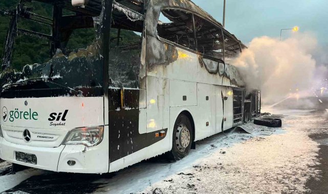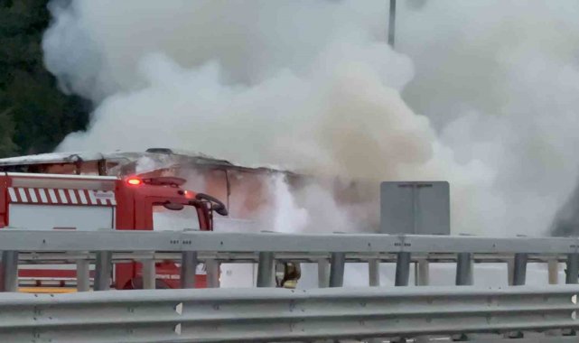 Anadolu Otoyolu Düzce mevkinde şehirlerarası yolcu otobüsü alev alev yandı, İstanbul istikameti trafiğe kapandı. Olay, Anadolu Otoyolu Ekrem Özdemir viyadüğü üzerinde meydana geldi. Alınan bilgilere göre, Giresun'un Görele ilçesinden İstanbul'a sefere çıkan ve içerisinde 38 yolcusu bulunan Görele Asil Seyahat'e ait Dursun Ali H.'nin kullandığı 20 AOR 002 plakalı Mercedes marka otobüs, Ekrem Özdemir Viyadüğü üzerinde yanmaya başladı. Alevlerin çıktığını gören sürücü, aracı emniyet şeridine çekerek, yolcuları otobüsten indirdi. Kısa süre içerisinde otobüs alev topuna dönerken bölgeye itfaiye ekipleri sevk edildi. Yangın söndürme çalışmaları çerçevesinde yol trafiğe kapatılırken, yangın yaklaşık 1 saatlik çalışmanın ardından söndürüldü. Yangında otobüs tamamen kullanılamaz hale gelirken, alevler sebebi ile kapanan yolda kilometrelerce araç kuyruğu oluştu. Otobüsteki yangının söndürülmesinin ardından yol tek şeritten trafiğe açıldı. Olayla ilgili inceleme başlatıldı.