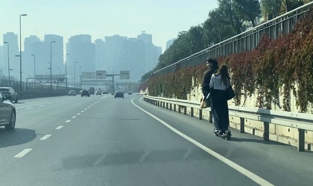 Olay, İstanbul Çevreyolu Kadıköy istikametinde meydana geldi. Bir genç erkek ve bir genç kadın, otoyol üzerinde scooter ile hiçbir koruyucu ekipman kullanmadan ilerledi. Cep telefonu kamerasına yansıyan görüntülerde, gençlerin hem kendi canlarını hem de trafiği tehlikeye atarak uzun süre yolculuk ettikleri görüldü.