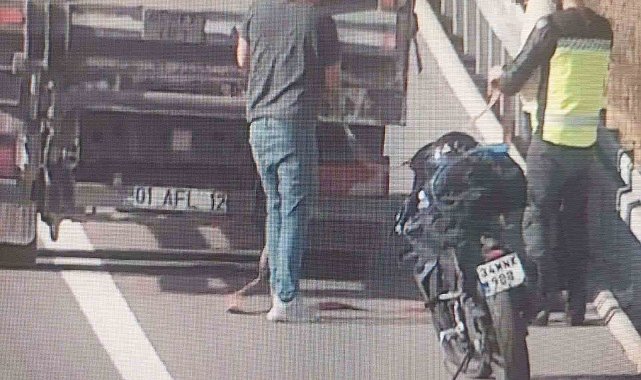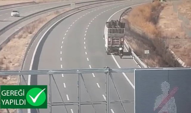 Ankara Niğde otoyolunda benzini biten bir motosikleti, yoldan geçen kamyon ile çektiler. Tehlikeli bu yolculuk ise otoyolda bulunan güvenlik kameralarına saniye saniye yansıdı.