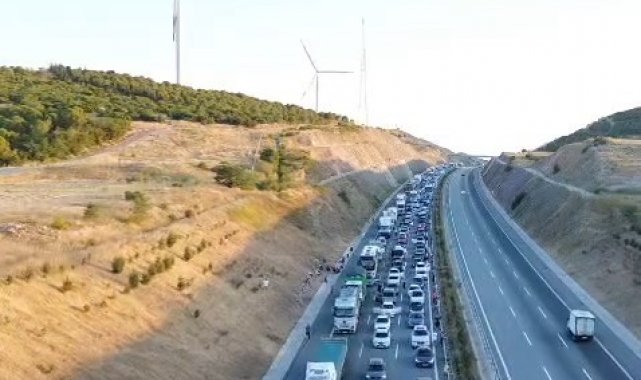 Otoyol üzerinde kilometrelerce araç kuyruğu oluştu. Araçlarından inen vatandaşlar, yol kenarında oturarak yolun açılmasını bekledi. Oluşan uzun araç kuyruğu dronla havadan görüntülenirken, kazaya ilişkin inceleme başlatıldı.
