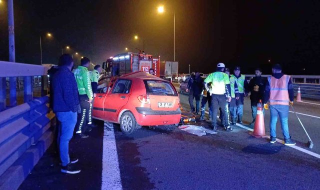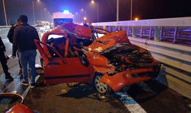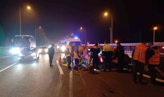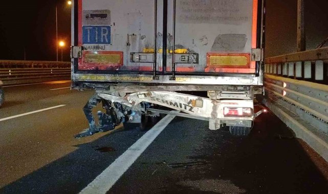 Otoyolda tıra arkadan çarpan otomobil hurdaya döndü: 4 yaralı