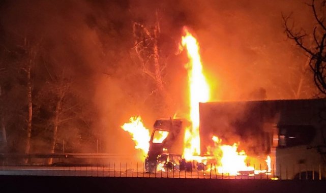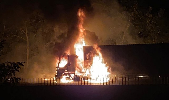 Otoyolda tırdaki yangın ormanlık alana sıçradı